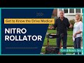 Handle height adjusts 33.5" - 38.25" ••• Seat area is 18" between handles ••• Lightweight Euro style frame weighs only 17.5 lbs. ••• Locking hand brakes with internal brake cables ••• Large 10" front wheels ••• Cross brace design for easy side to side folding ••• Removable storage bag included ••• Supports users up to 300 lbs.